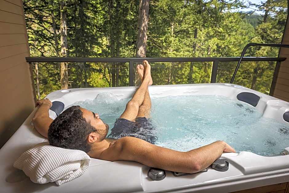 The hot tub is a top feature of this suite. This spacious suite comes with 1 living room, 1 separate bedroom and 1 bathroom with a bath and free toiletries. In the fully equipped kitchen, guests will find a stovetop, a refrigerator, kitchenware and an oven. The air-conditioned suite features a flat-screen TV with cable channels, a tea and coffee maker, a seating area, a dining area as well as mountain views. The unit has 2 beds.